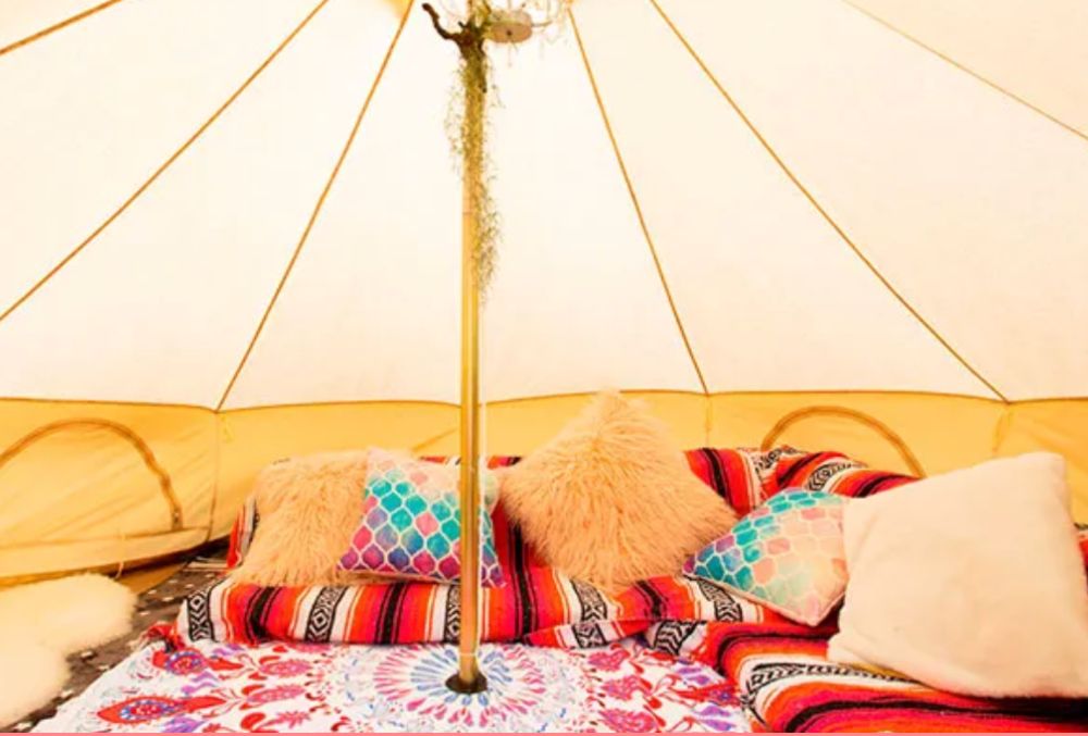 テントなどの外環境での設備にとどまらず、室内には寛げるソファー席・映像を楽しめるプロジェクターなども完備。
